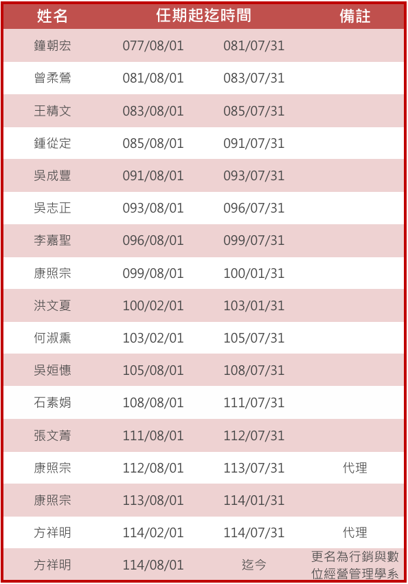 隨著進入數位科技與人工智慧(AI)快速發展的時代,企業經營型態與人才需求也產生重大轉變,世界經濟論壇並將「數位行銷與策略專家」名列未來前景看好的關鍵人才之一。基於強化學生就業競爭力與回應產業數位轉型需求的考量,本系積極調整方向,並於114學年度(2025年)奉准更名為「行銷與數位經營管理學系」,象徵本系從傳統管理教育進一步升級為兼具行銷創意與數位管理專長的跨域人才培育基地,持續成為本校管理教育的重要支柱。